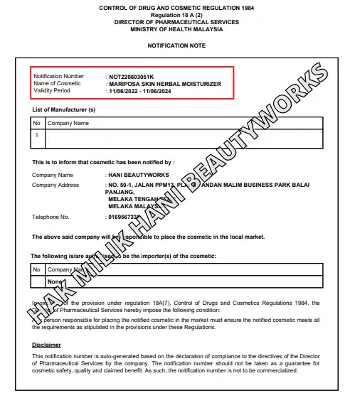 Ya lulus KKM. Nombor kelulusan ialah NOT220603051K