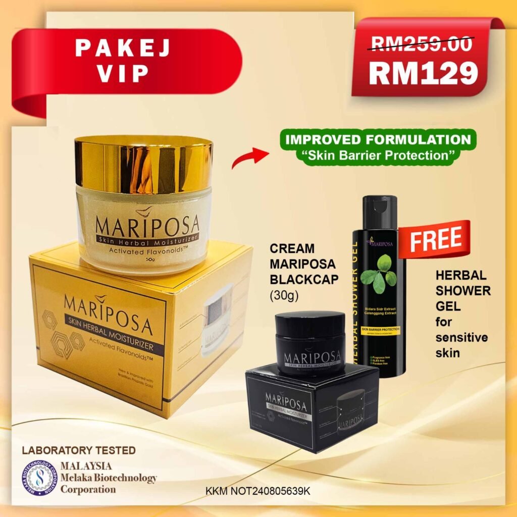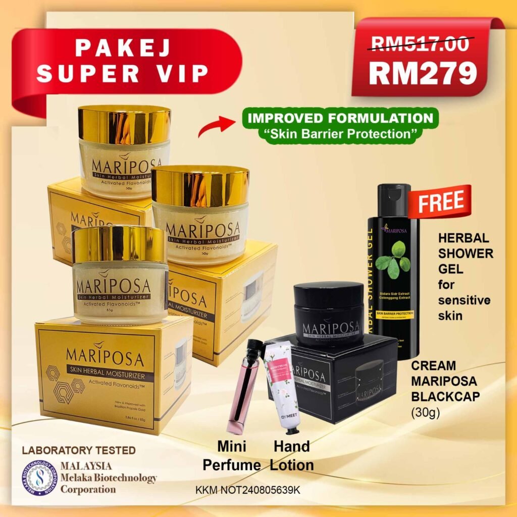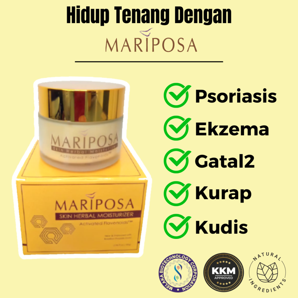 MARIPOSA diformulasi khas dengan bahan kandungan semulajadi dan organik, serta diperkuatkan lagi dengan BRAZILLIAN PROPOLIS GOLD, sangat terkenal dalam dunia perubatan.<br>Bahan terpenting di dalam Brazillian Propolis Gold ialah Activated Flavonoids yang mempercepatkan proses pengeringan dan kesembuhan luka-luka ekzima dan kudis-kudis berair. SANGAT PANTAS!