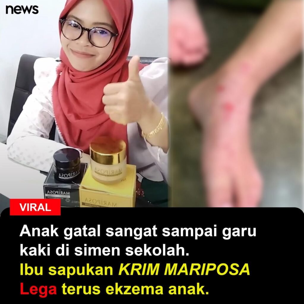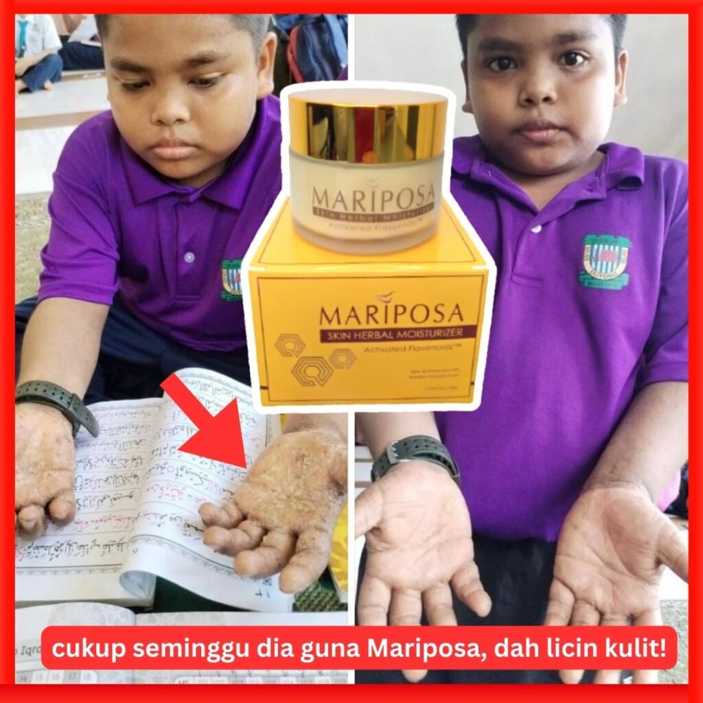 Pn. Rose – Terkejut Pn. Rose dulu apabila cikgu sekolah pernah mesej & beritahu anaknya mengalami ekzima yang teruk sehingga terpaksa garu kaki di simen sekolah.  Alhamdullilah kini selepas kerap mengamalkan krim Mariposa, Gatal2 Dah Lega.